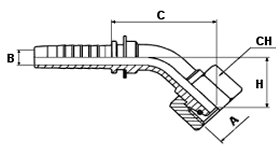 CURVA METRICA 45° CONO 24° SERIE LEGGERA --- 45° METRIC SWEPT ELBOW 24° SEAT LIGHT